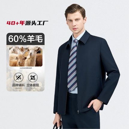 骆豪品牌春秋60%羊毛男装男夹克通勤男士高管行政夹克外套男
