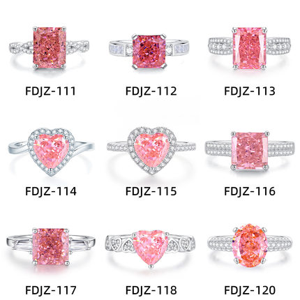 河南钻石商丘人造钻石帕帕拉恰粉S925纯银淡粉色彩宝高拖满钻戒指