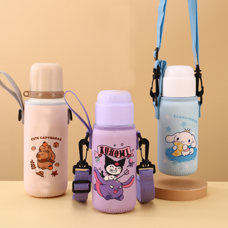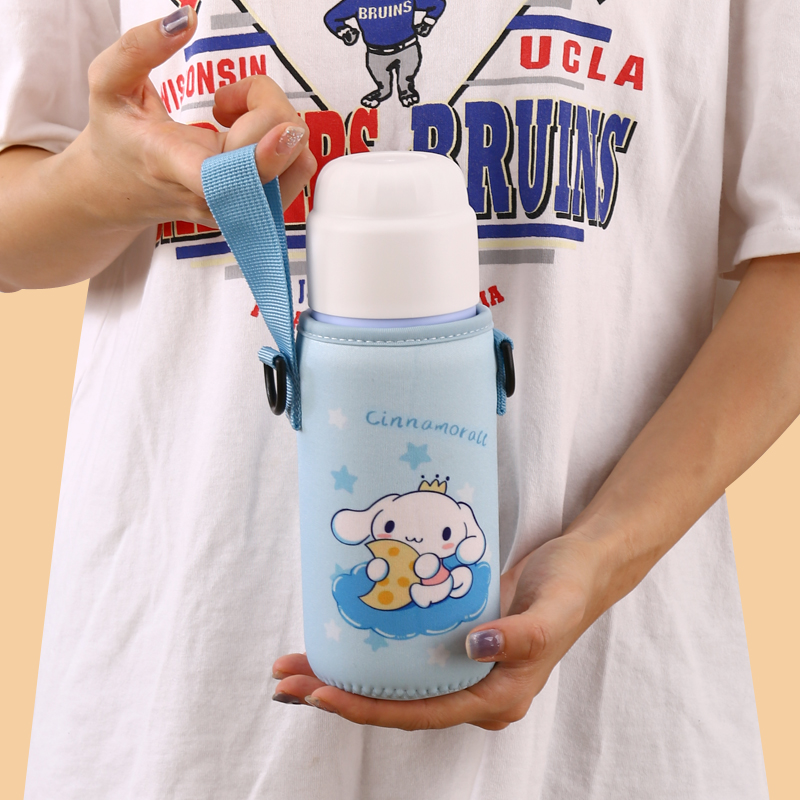 斜挎背带保温杯套通用可爱儿童便携手提保护套防摔外出专用水壶袋