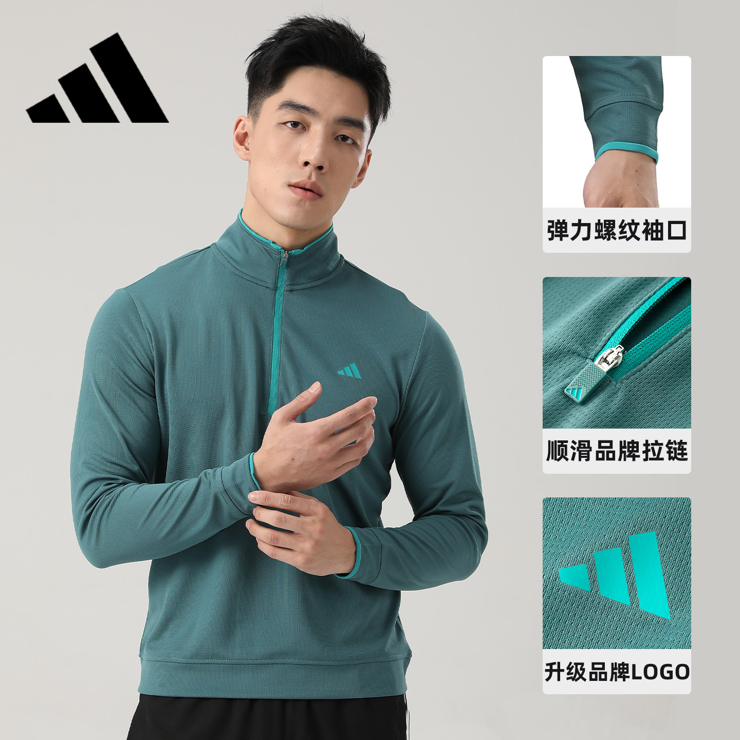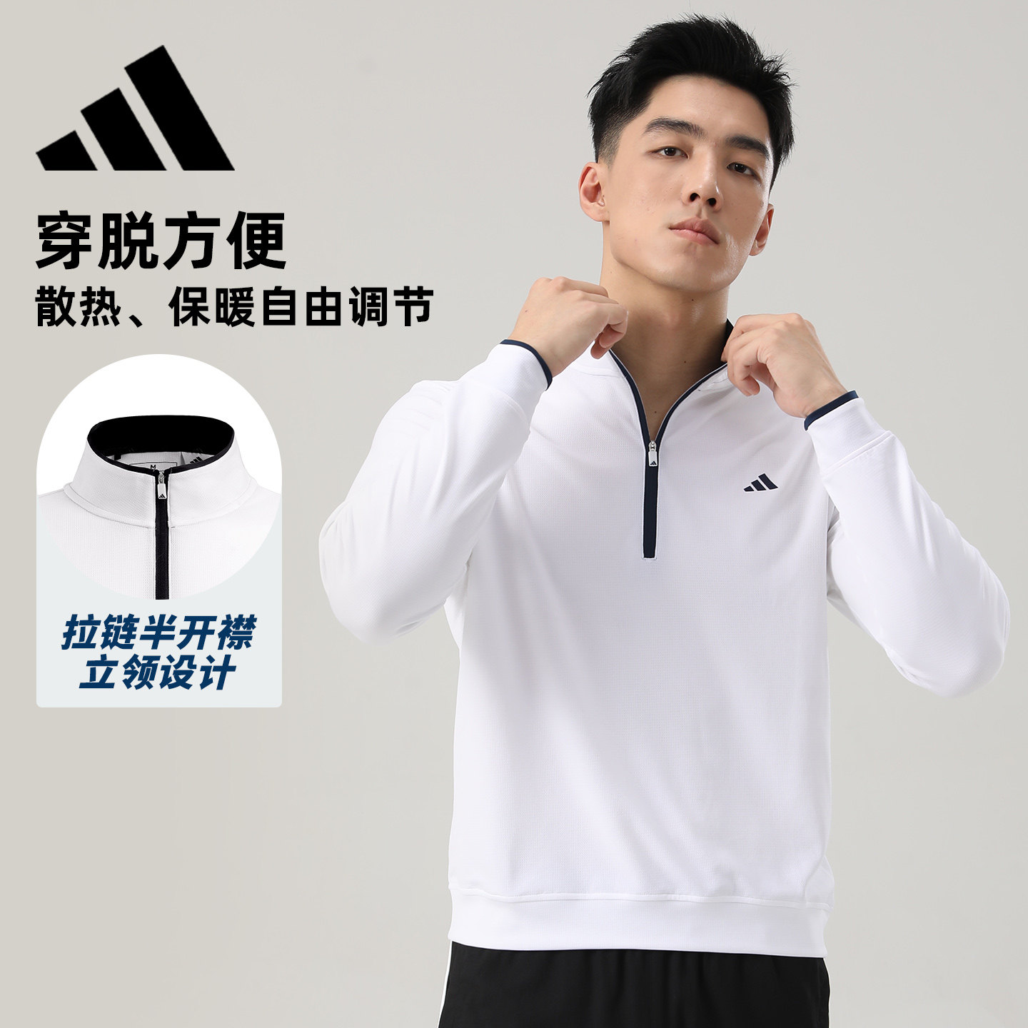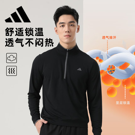 adidas阿迪达斯长袖男子秋冬季衫保暖半开襟健身半拉链卫衣训练服