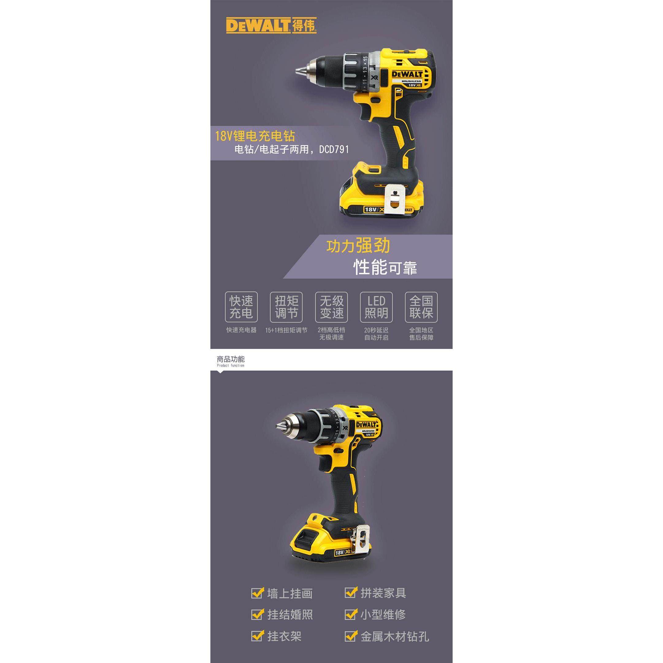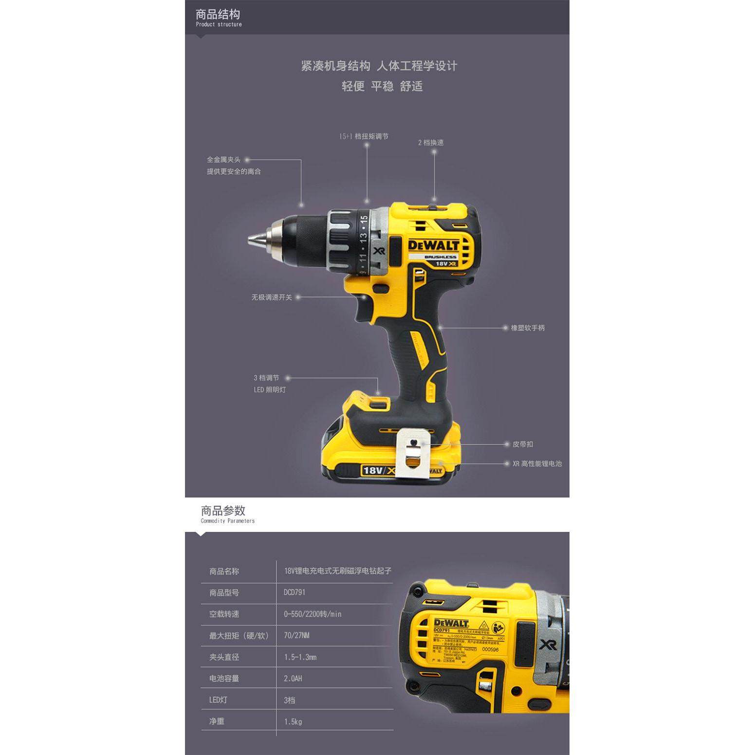 得伟无刷电钻18V充电钻锂电无线手电钻多功能电动螺丝刀DCD791