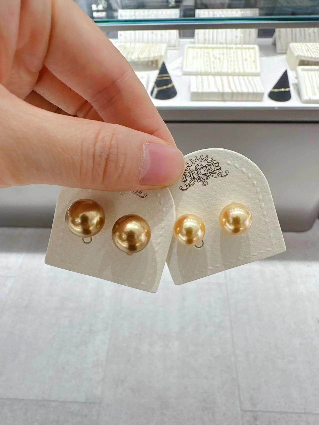 INNORE10k金简约金色珍珠耳钉
