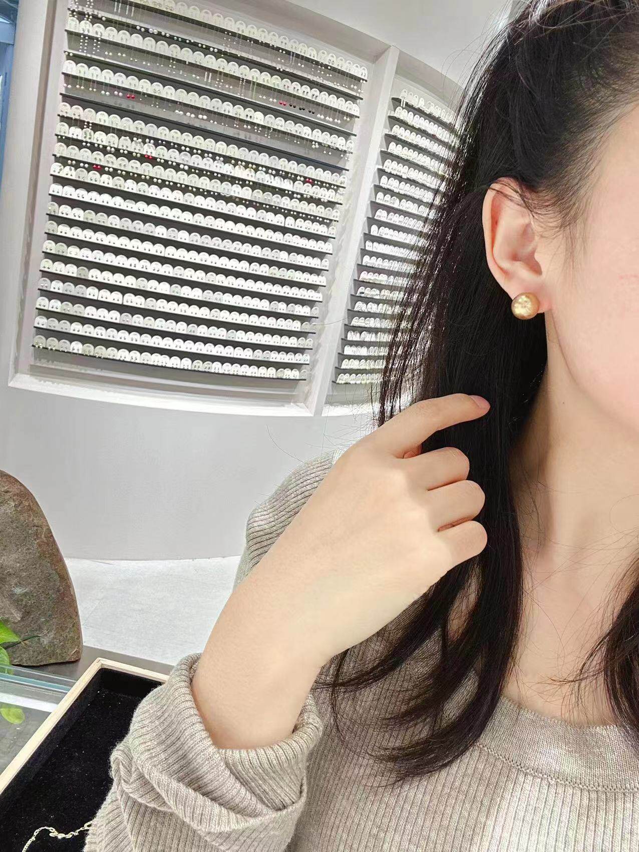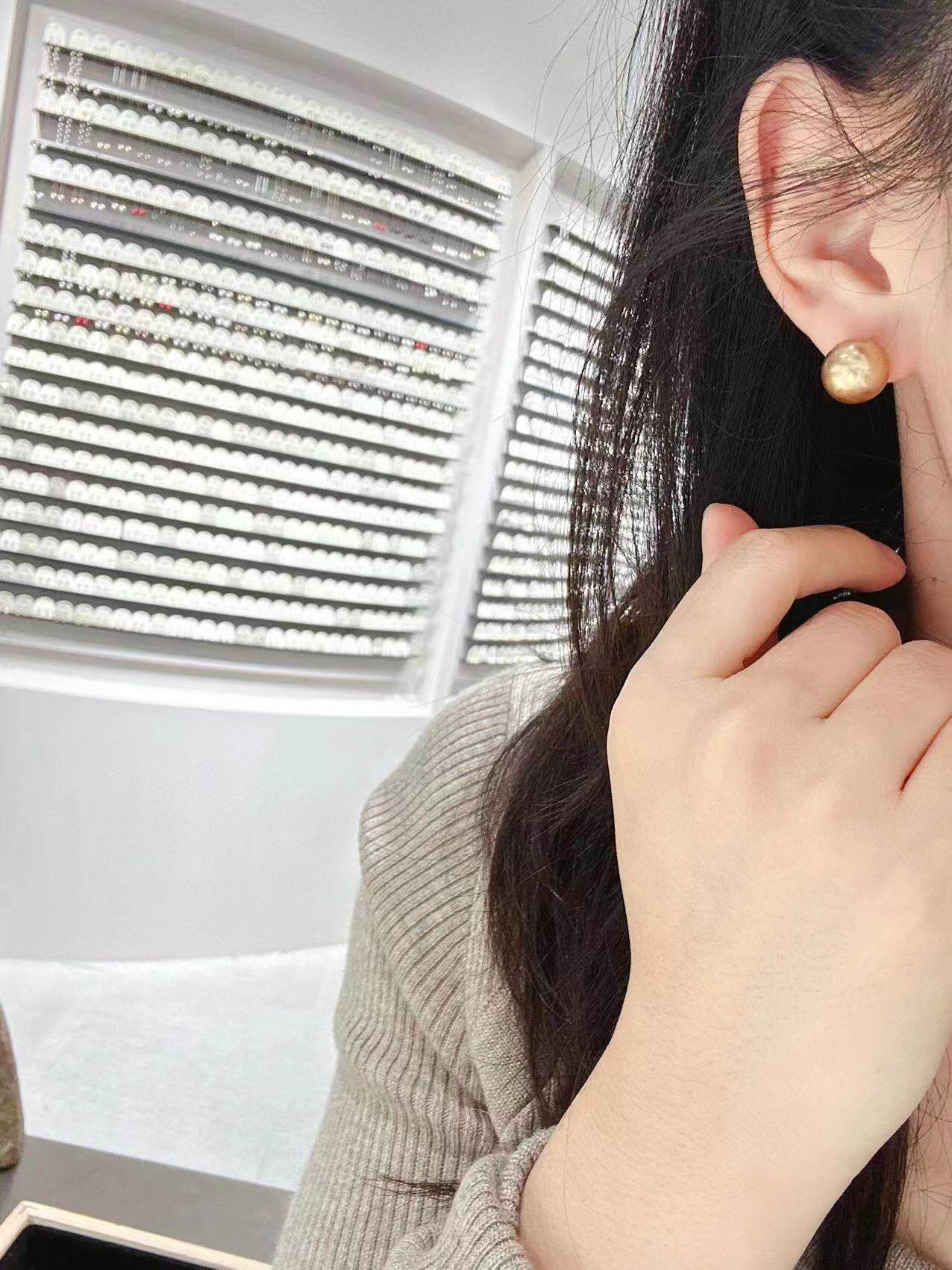 韩国10K黄金耳钉女 精致简约金色珍珠贝珠彩金耳饰潮女礼物