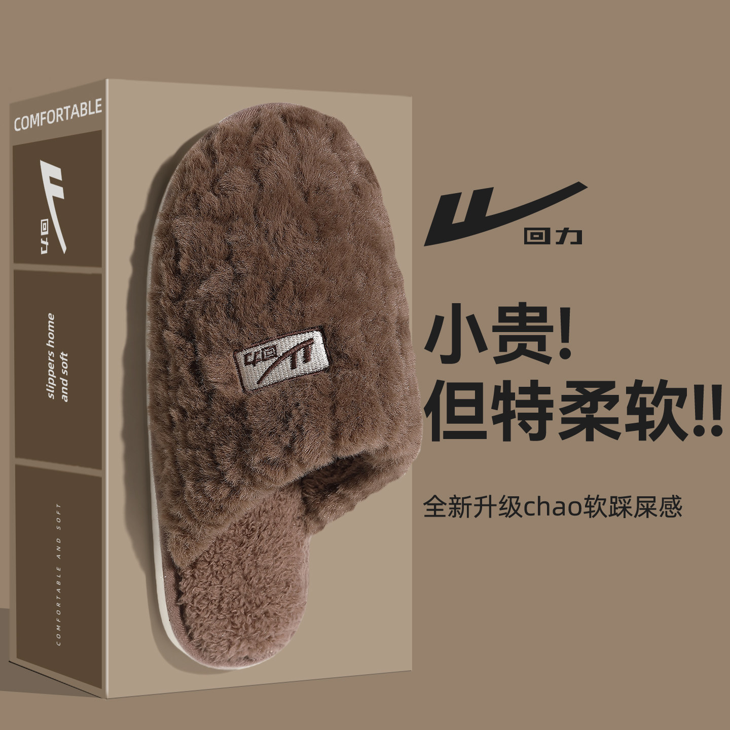 回力棉拖鞋男款秋冬季2025新款室内家居防滑厚底毛毛加绒保暖棉拖