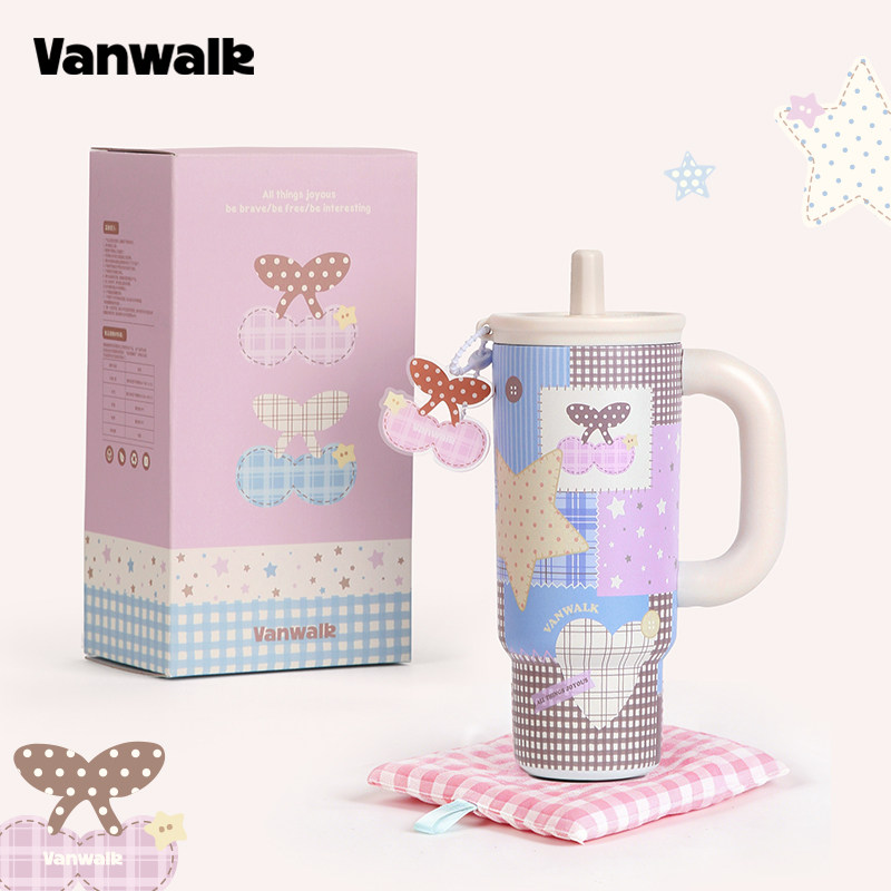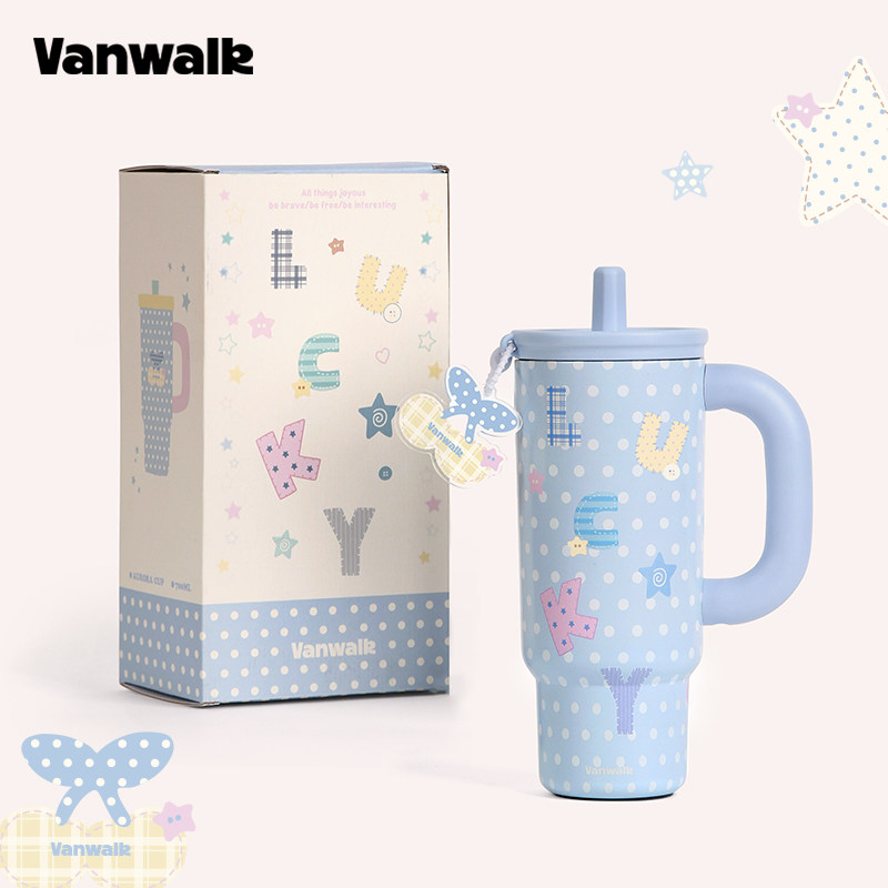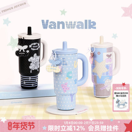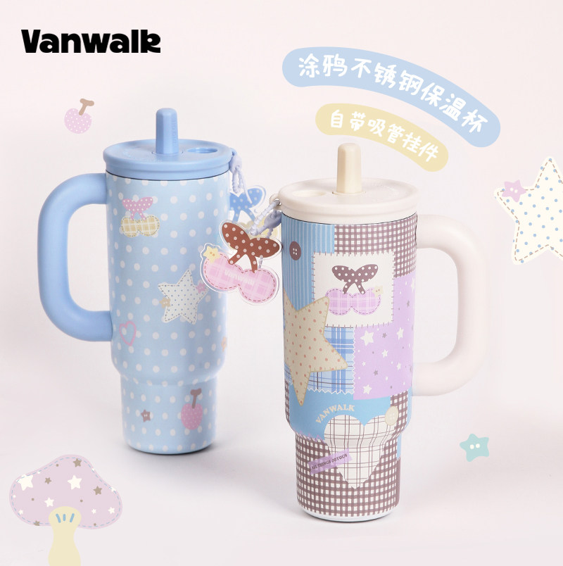 VANWALK lucky pony新款高颜值学生水杯女大容量不锈钢吸管保温杯