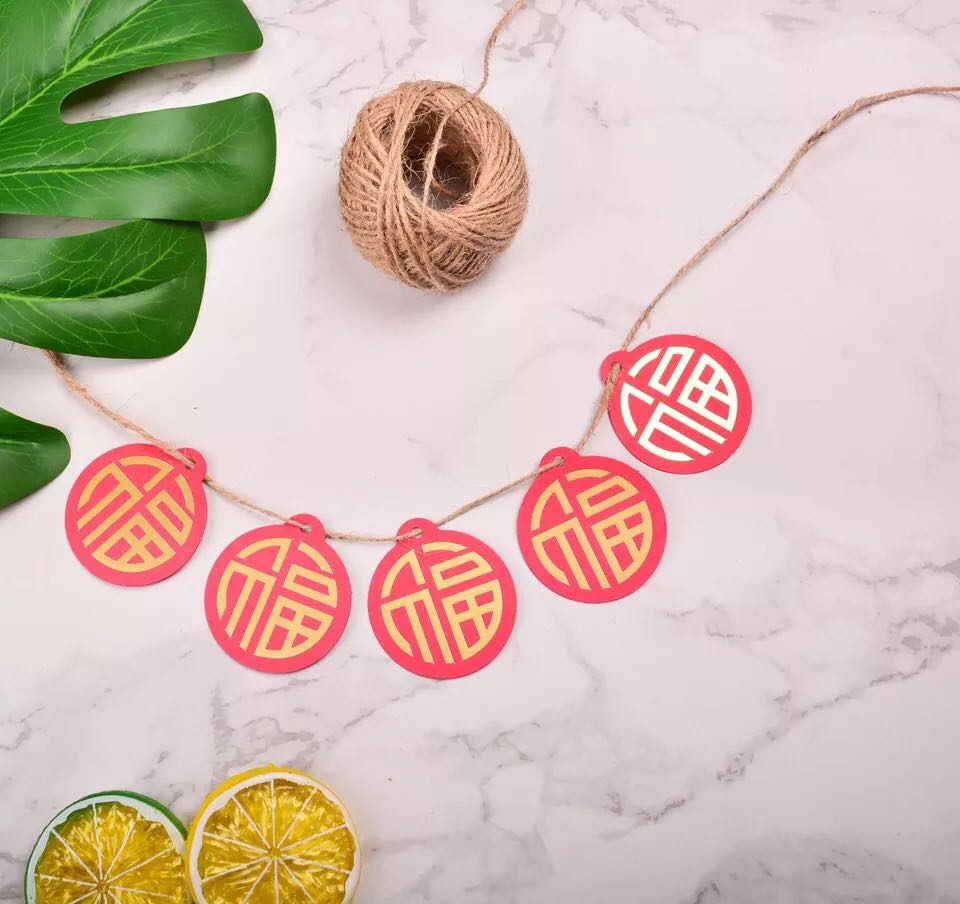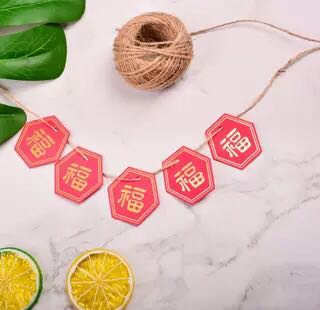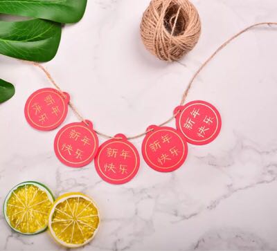 红色烫金福字吊牌新年快乐包装盒挂饰吊卡烘焙装饰挂牌卡片