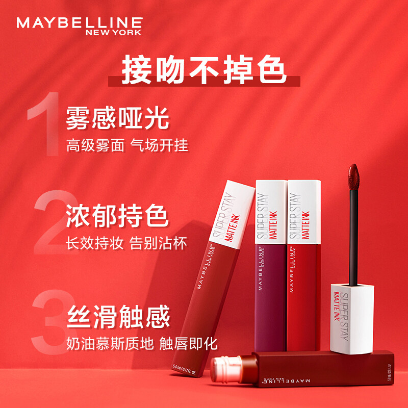 美宝莲接吻棒唇釉雾面哑光不易脱色提升气色口红女显白官方正品