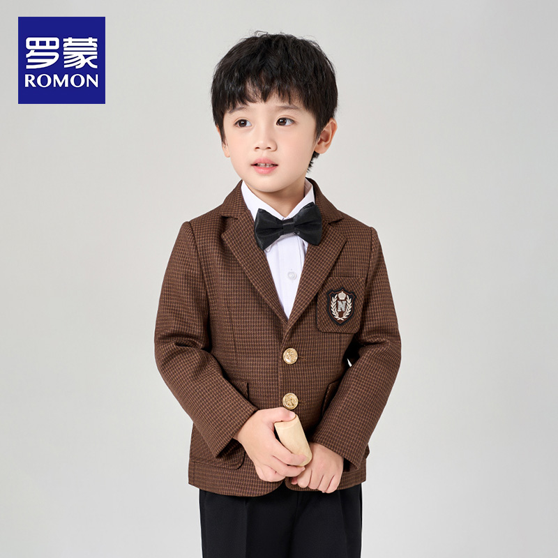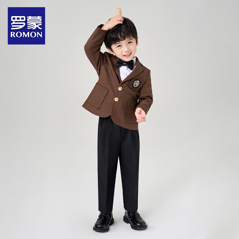 罗蒙儿童西服套装男童礼服花童小西装三件套主持人西装外套学院风