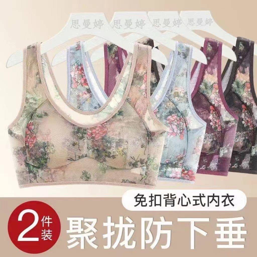 中老年无痕运动内衣女文胸无钢圈大胸显小收副乳背心式睡眠文胸罩