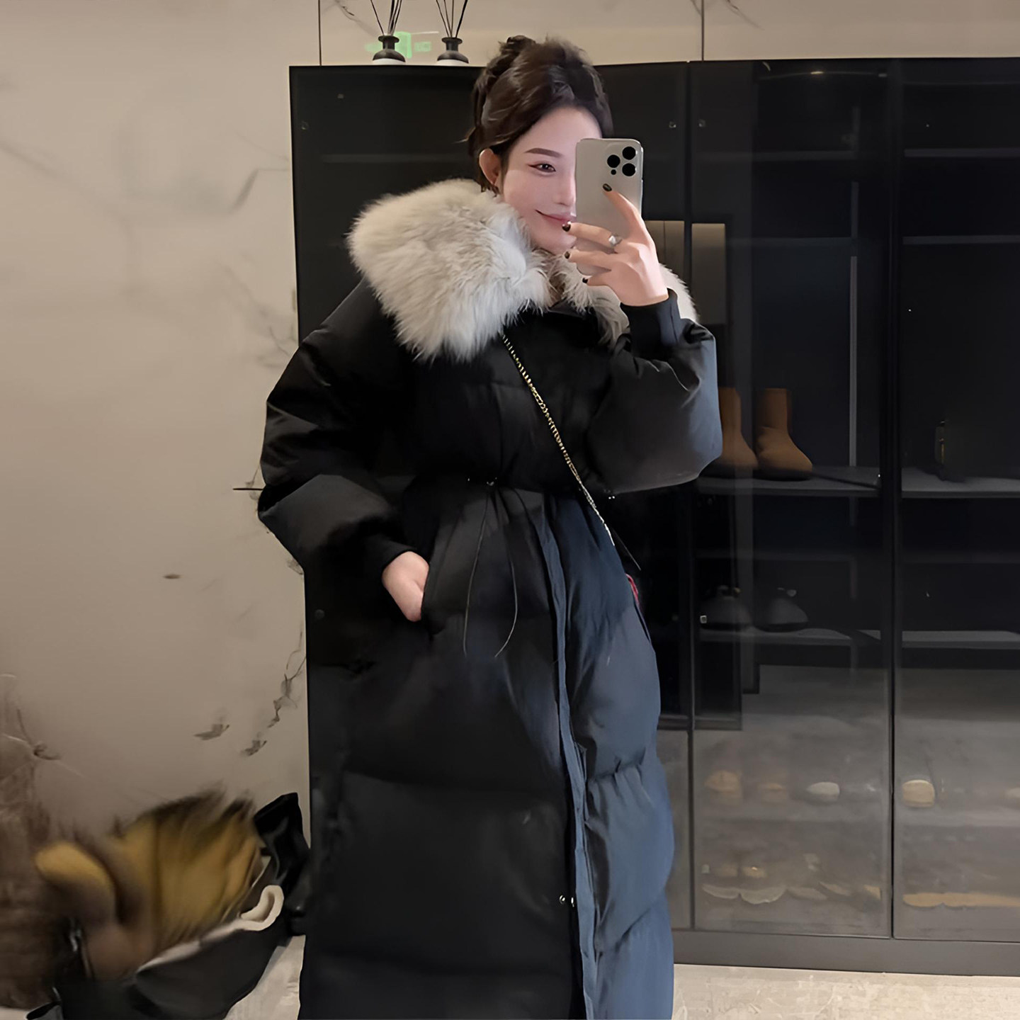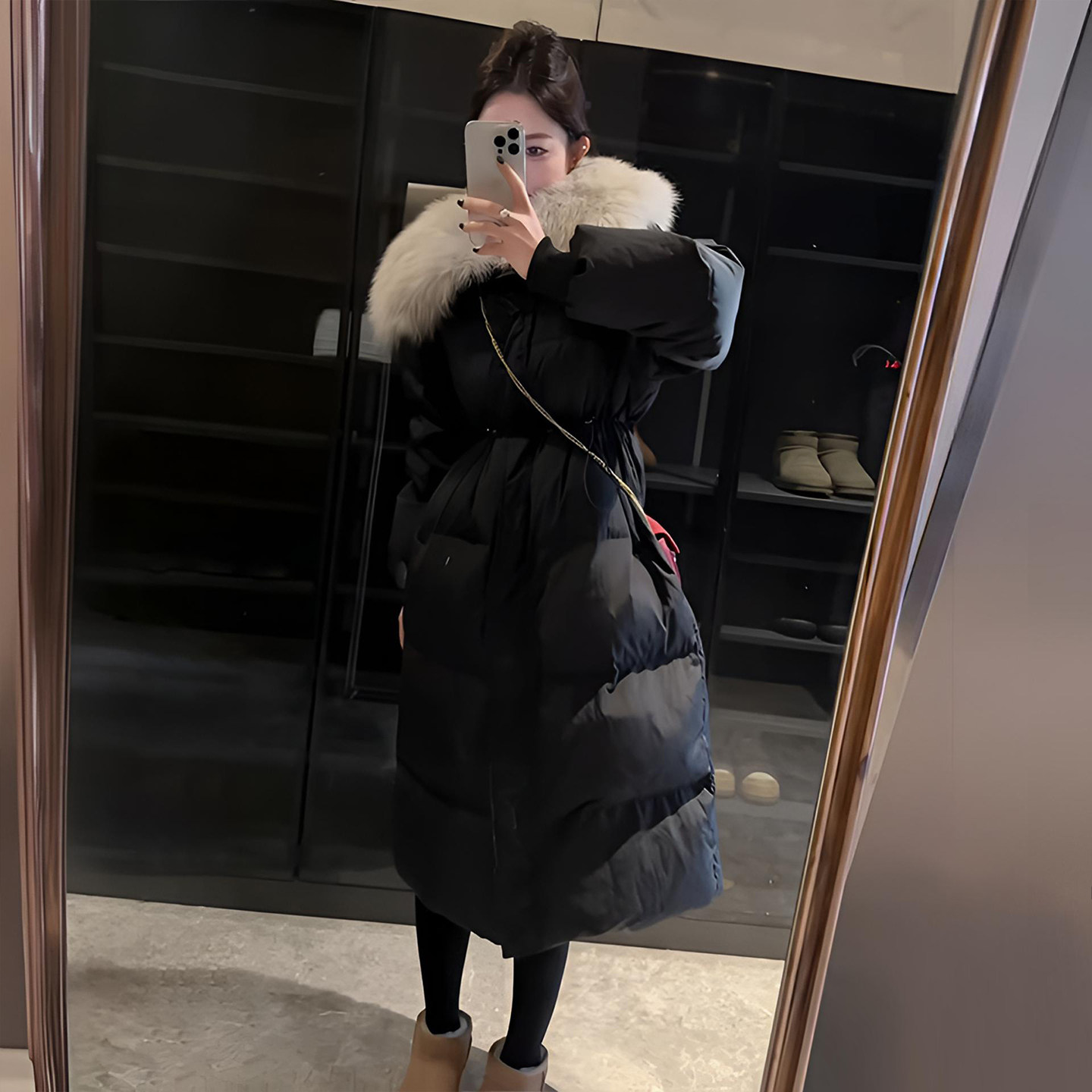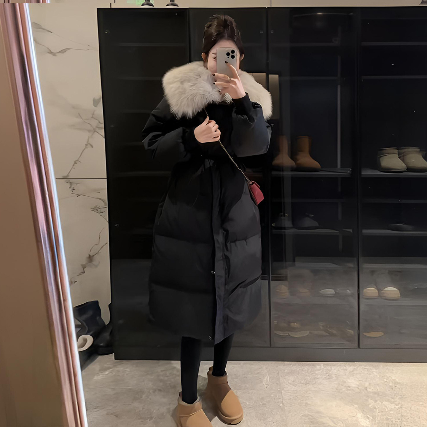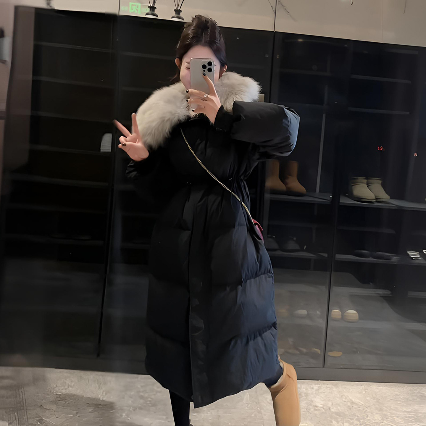 大码女装胖mm黑色中长款大毛领棉服女宽松高级感加厚保暖棉衣外套