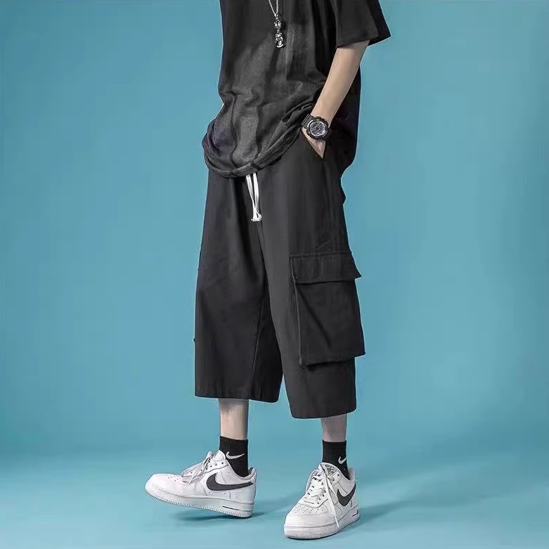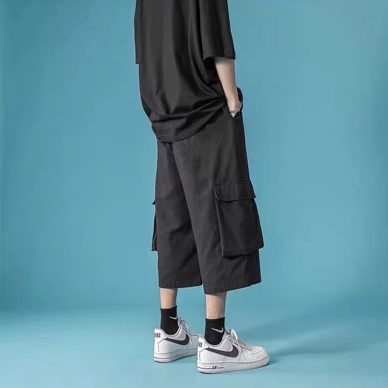休闲裤夏季七分裤男士宽松阔腿裤国潮牌薄款运动裤子机能工装短裤
