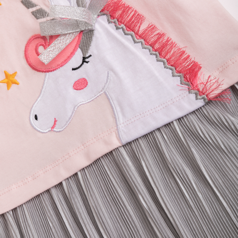 春秋季女童长袖连衣裙纯棉刺绣独角兽洋气甜美拼接秋装女孩裙子萌