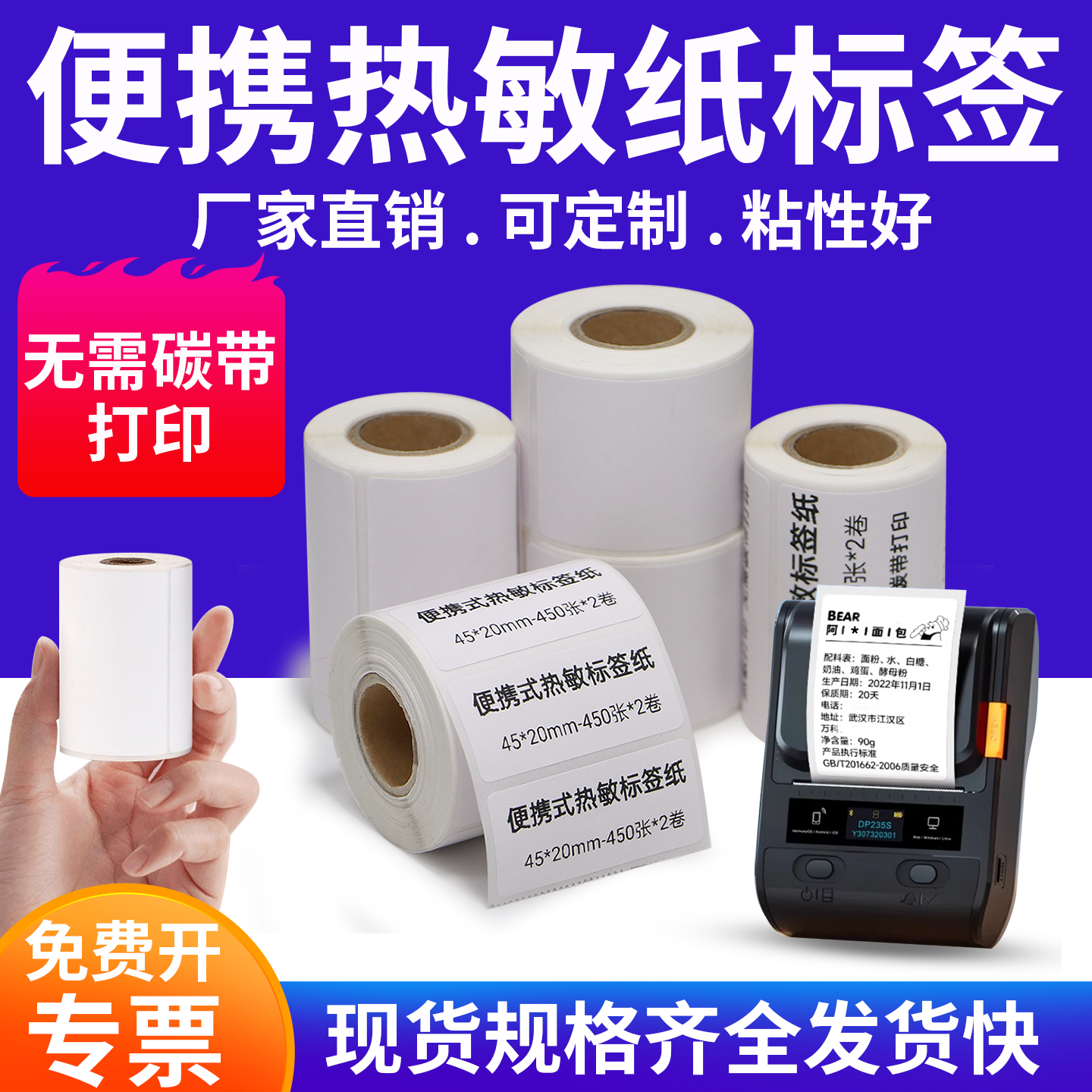 便携热敏纸65小卷芯空白价格签不干胶条码标签纸条形码超市商店