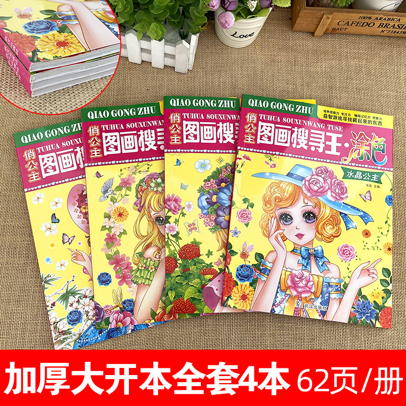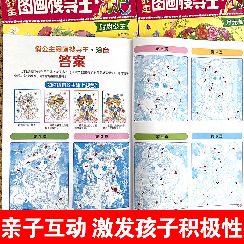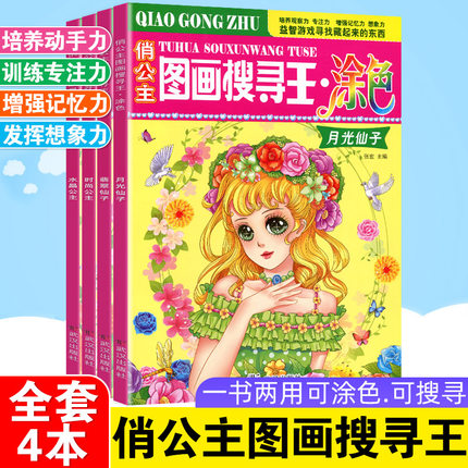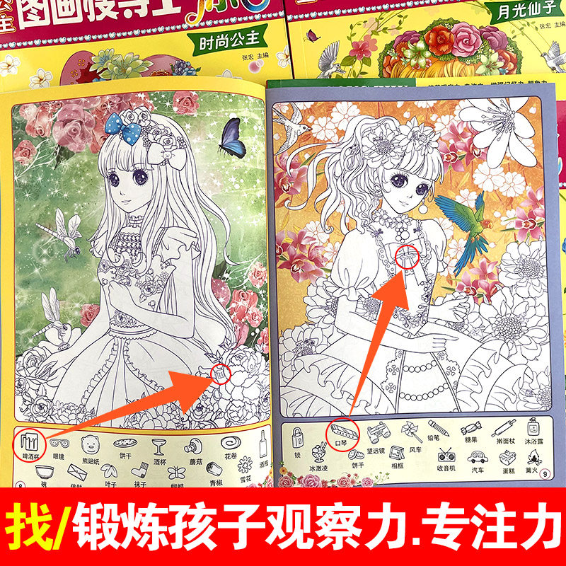 俏公主图画搜寻王涂色彩绘本美少女隐藏的图画少儿3-6-9-12岁儿童益智游戏书捉迷藏幼儿专注力训练找不同极限视觉挑战大发现涂色书