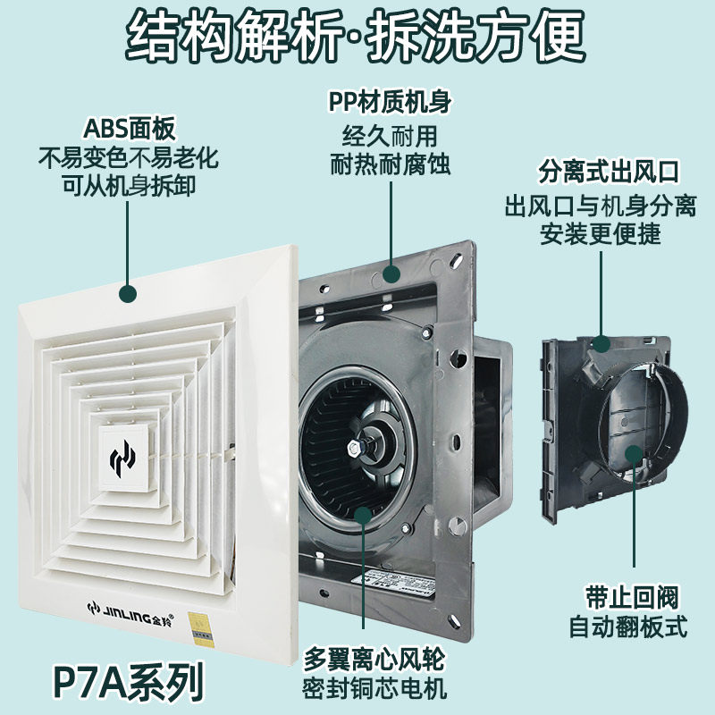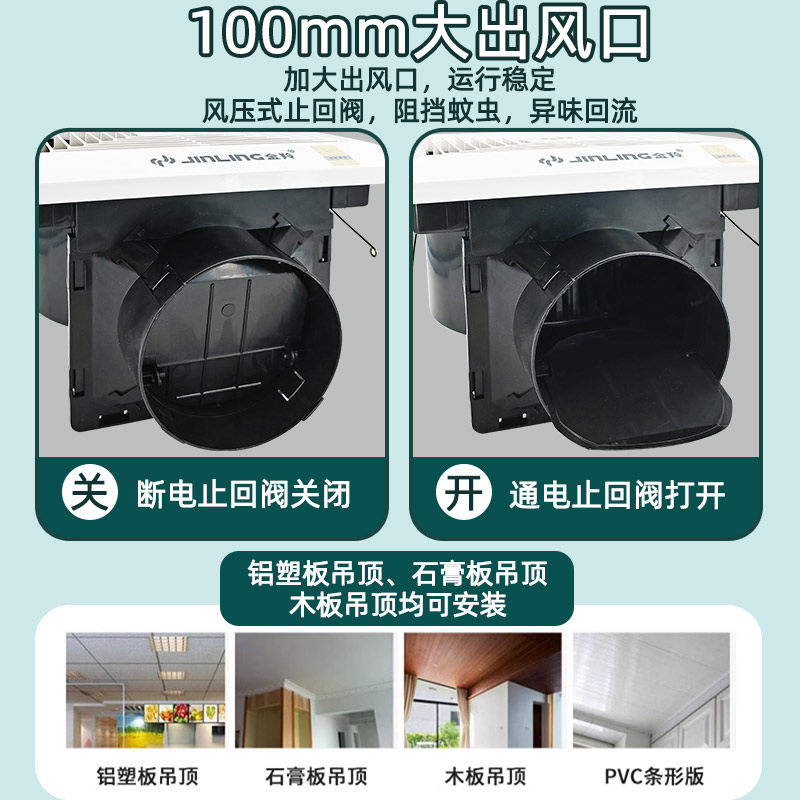 金羚排气扇低噪卫生间家用管道吸顶式厨房强力天花排风换气抽风机