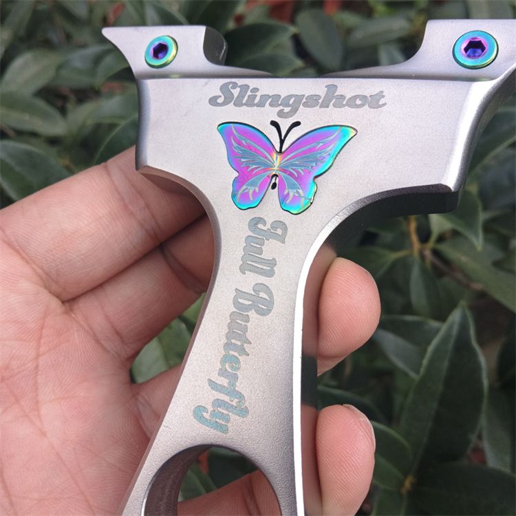 25撑头不锈钢炫彩蝴蝶弹弓扁皮快压免绑户外高精准越南外贸牛角工