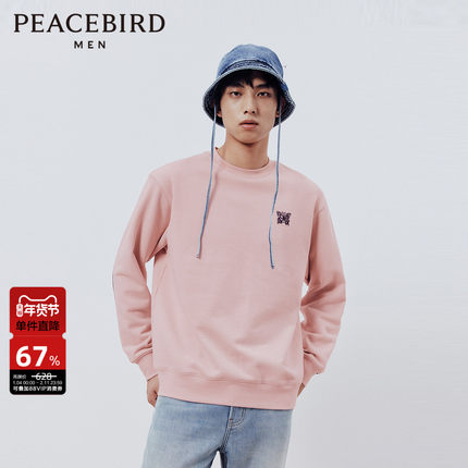 太平鸟男装休闲卫衣秋冬男士卫衣圆领套头衫条杠宽松立体刺绣