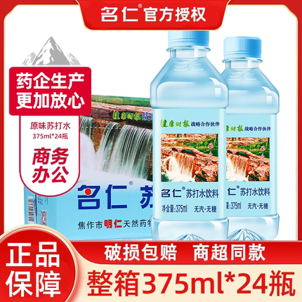 名仁苏打水整箱375ml*12/24瓶装原味无糖无气弱碱柠檬饮料饮用水