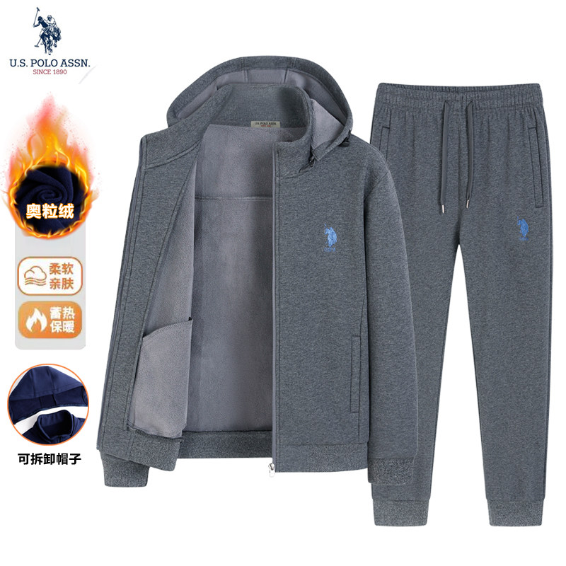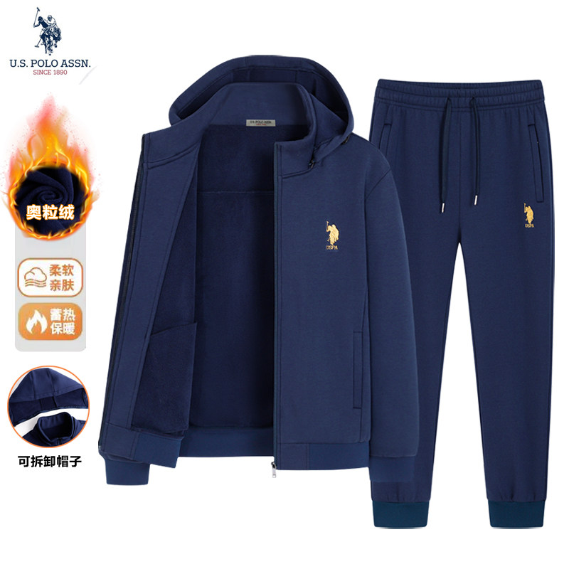 U.S. POLO ASSN.运动卫衣套装男新款秋冬季男士加绒加厚休闲服装