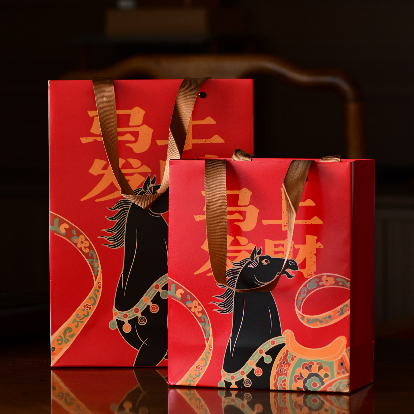 2026年马年质感珠光礼品袋手提袋通用茶叶包装袋子伴手礼可定制
