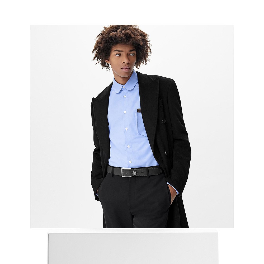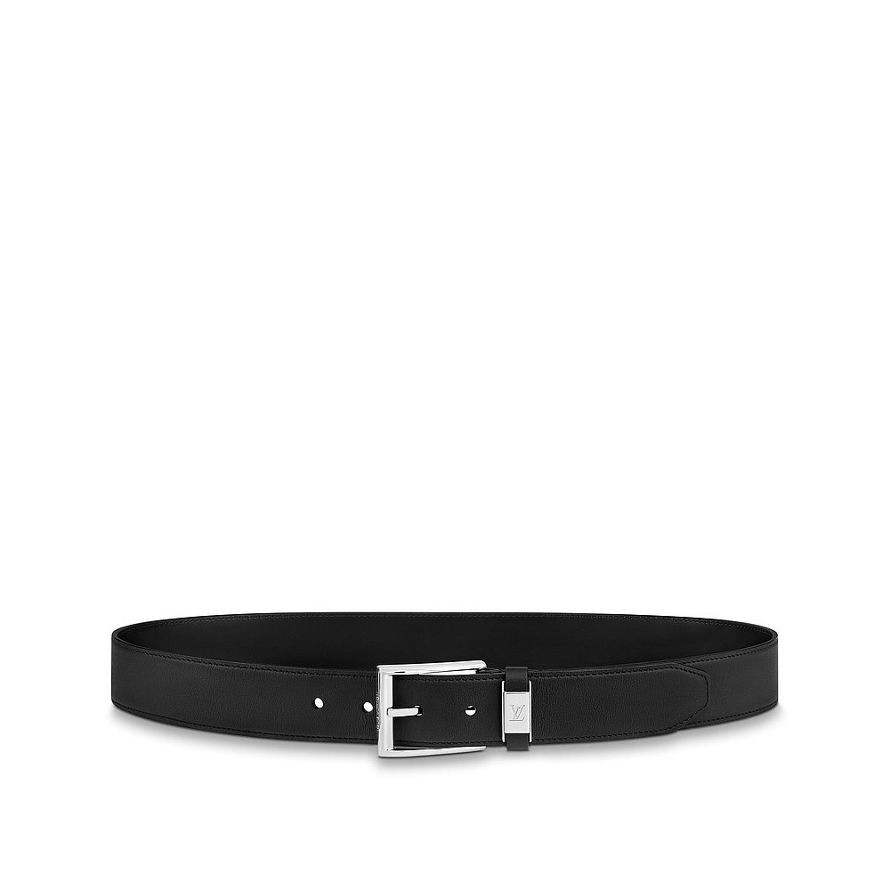 欧洲直邮LV/路易威登24新款 男士黑色小牛皮镀银扣腰带3.5cm商务