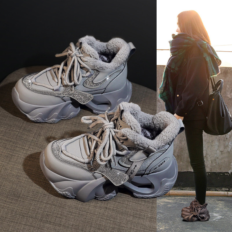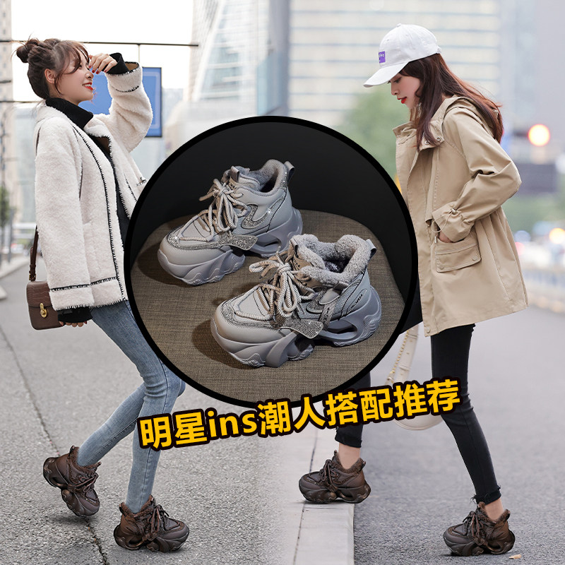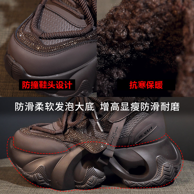 厚底加绒加厚雪地靴女冬季保暖2026年超火新款内增高高帮老爹爆款