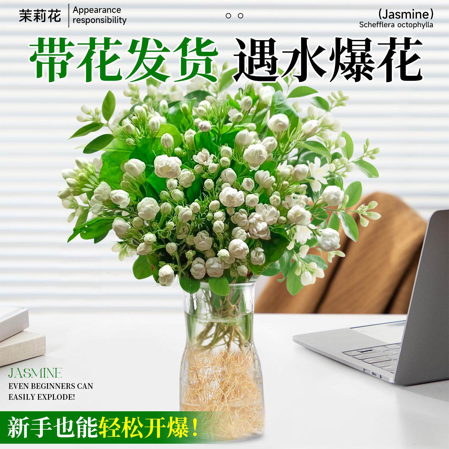 茉莉花水培植物盆栽带花苞办公室内桌面好养懒人鲜花绿植水养花卉