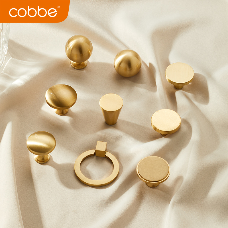 卡贝黄铜柜门拉手法式轻奢现代简约金色橱柜抽屉鞋柜北欧衣柜把手