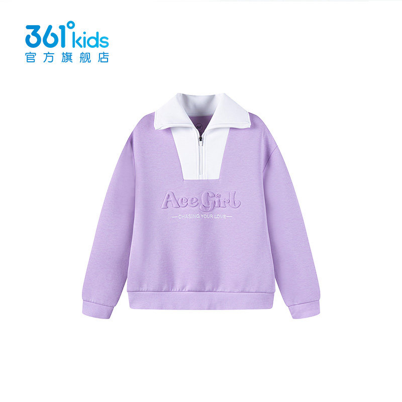 361度kids女童卫衣2025秋冬新款拼接翻领拉链长袖上衣K62513309