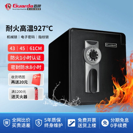 盾牌家用小型防火防水防盗保险柜大容量43/45/61cm办公室机械保险箱工业版指纹密码官方正品床头衣柜夹万