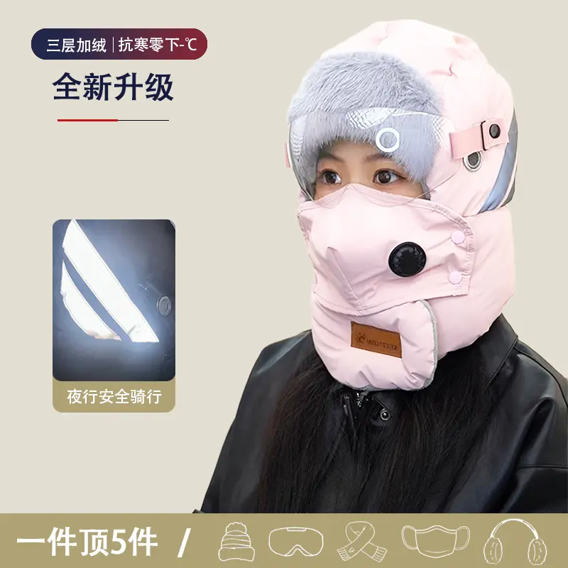 冬天骑车防寒保暖神器防风帽子围脖一体冬季雷锋帽男女同款新款