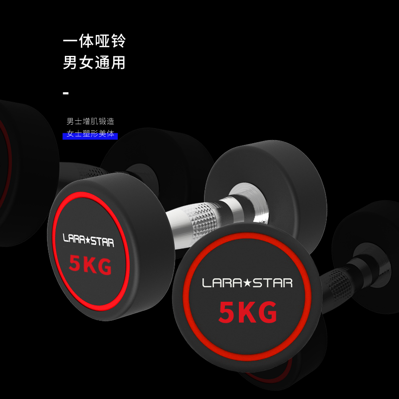 劳拉之星3093圆头纯钢哑铃男士健身房专用健身器材家用铁包胶亚铃