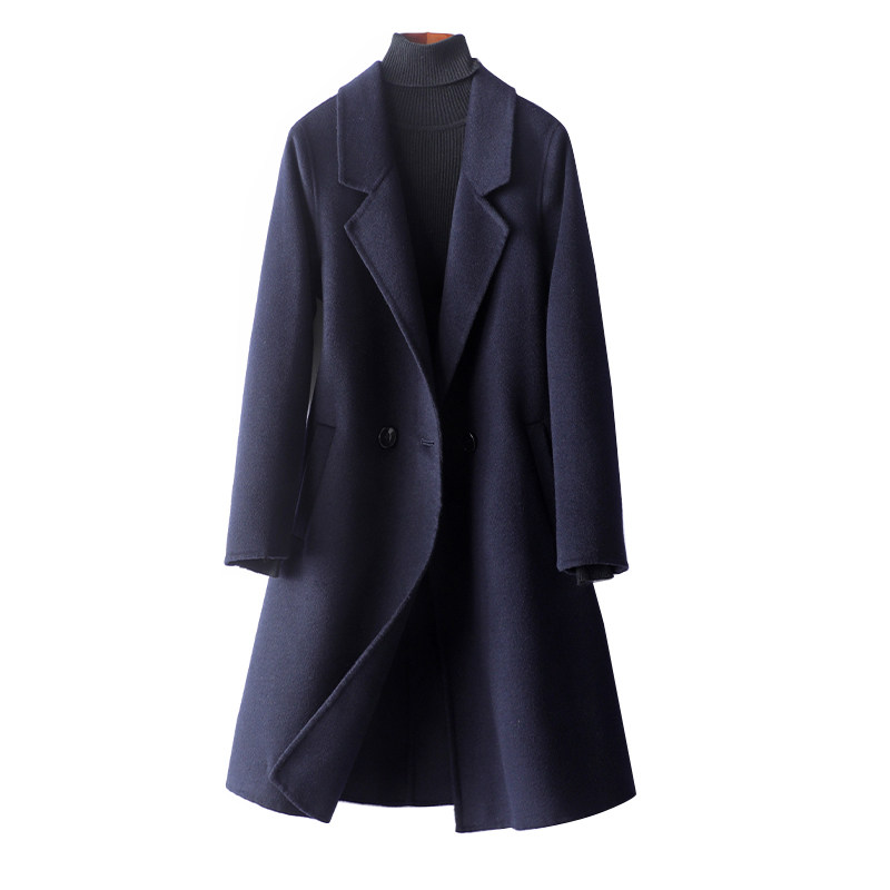 双面羊毛大衣女中长西装领修身气质羊毛呢子秋冬新款高端毛呢外套