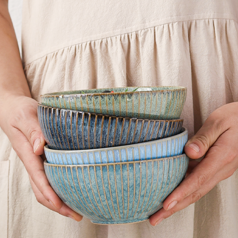 二郎家【少有的窑变釉】创意条纹碗釉下彩陶瓷家用面碗沙拉碗微瑕