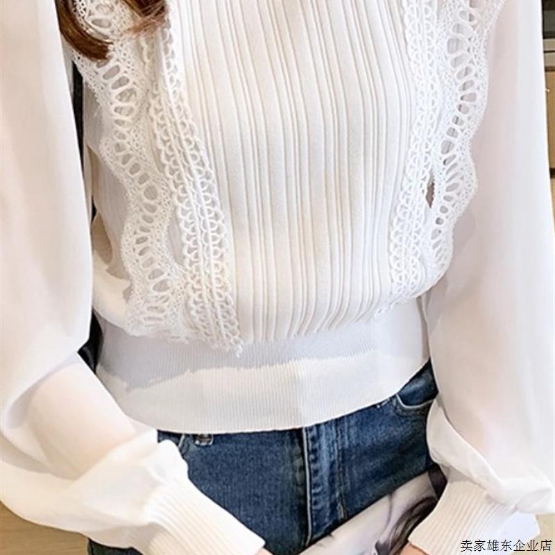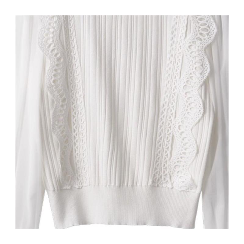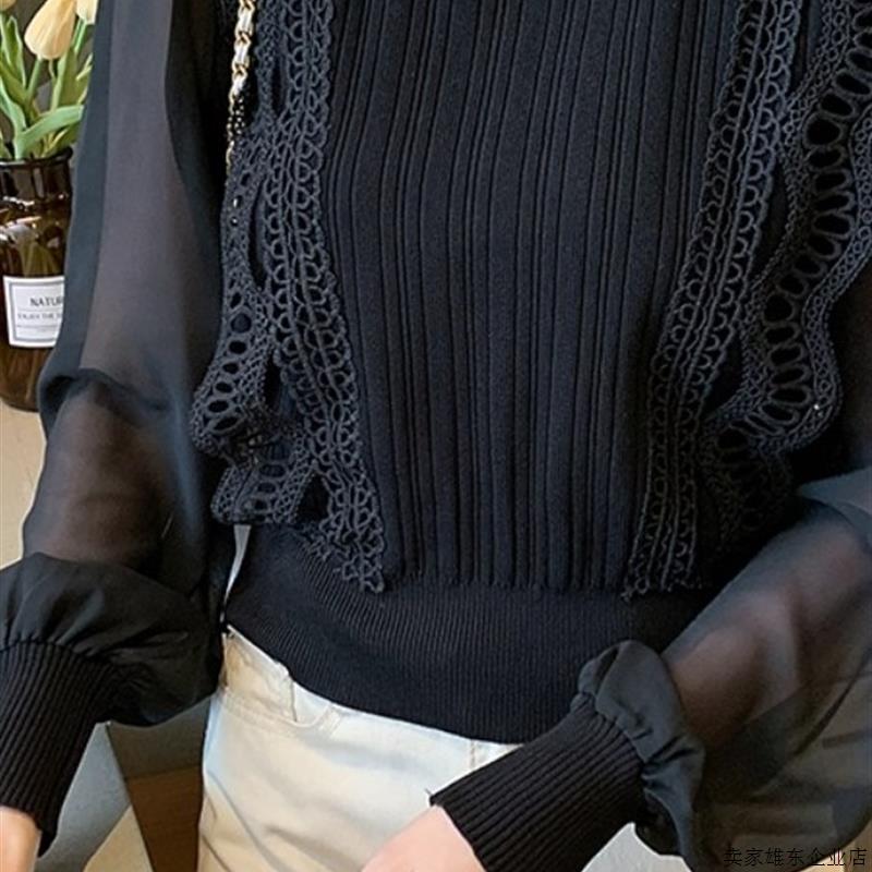 2025春秋新款法式气质雪纺拼接针织衫女修身长袖洋气内搭毛衣上衣