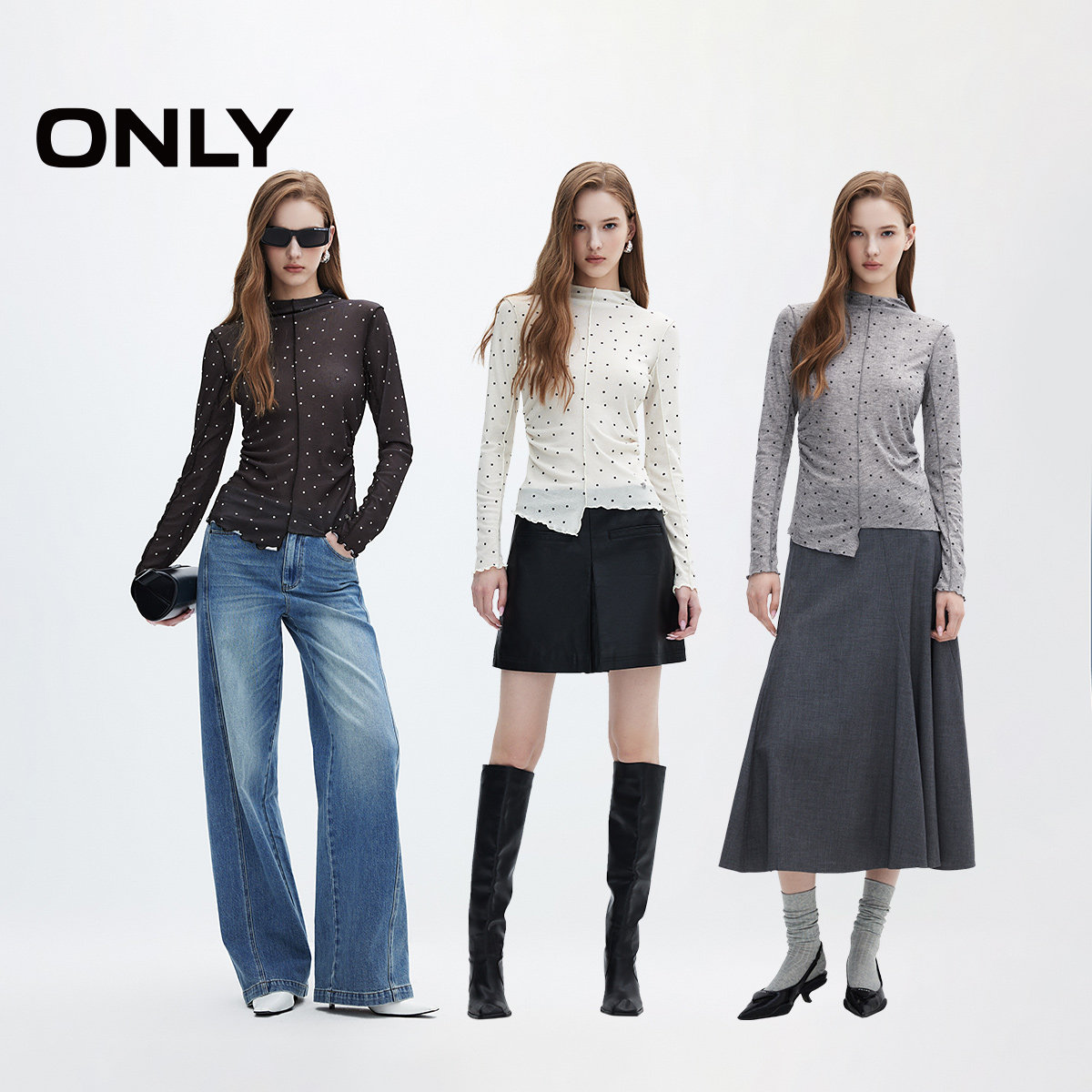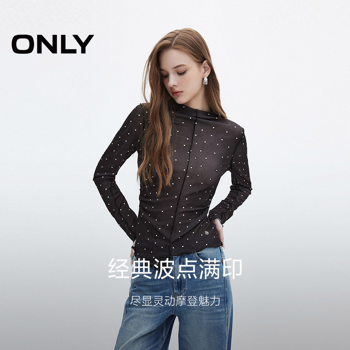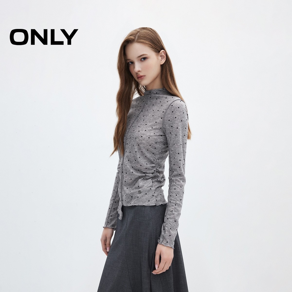 ONLY秋季百搭潮流抽褶波点印花轻薄长袖T恤女|124302010