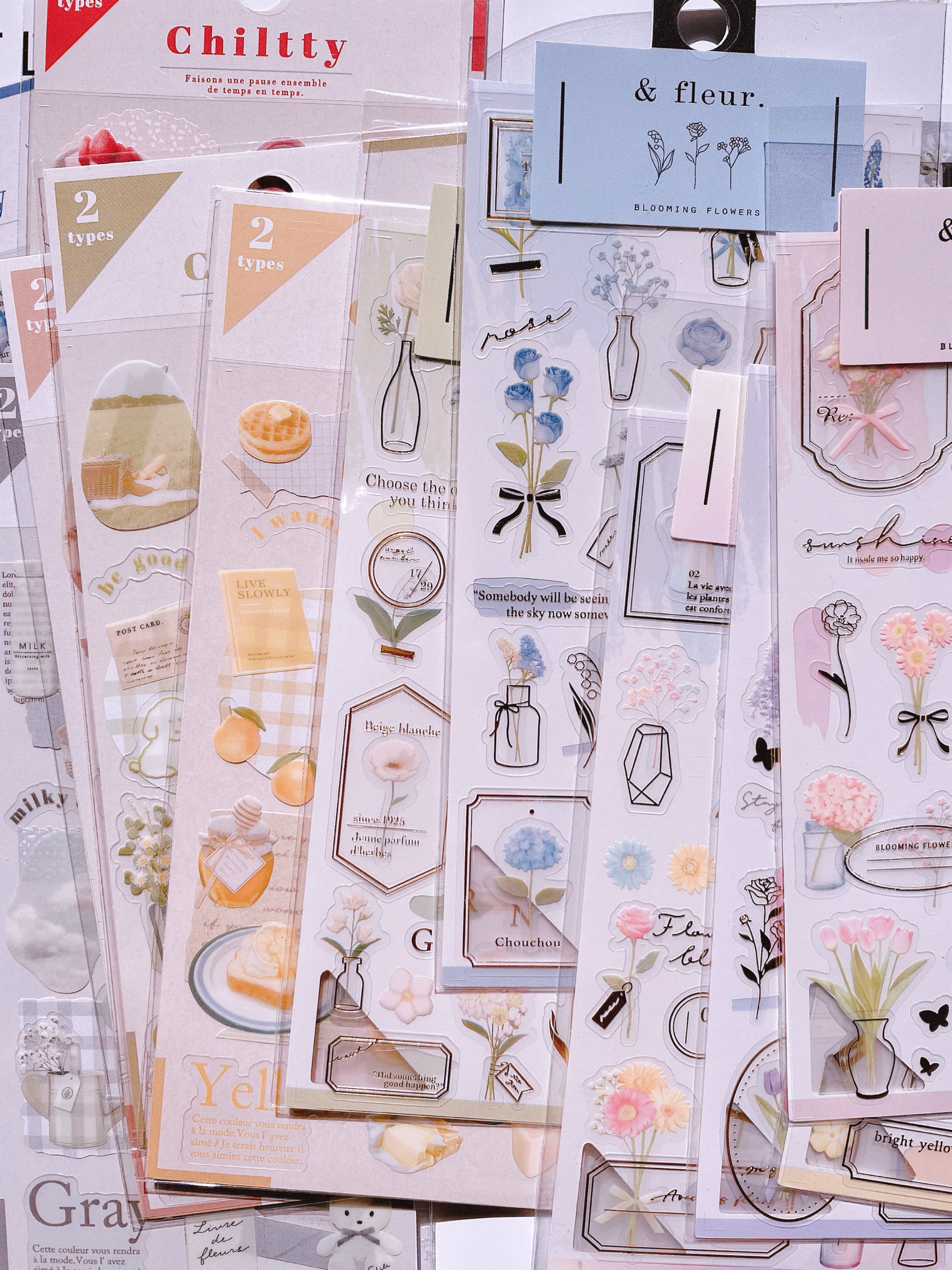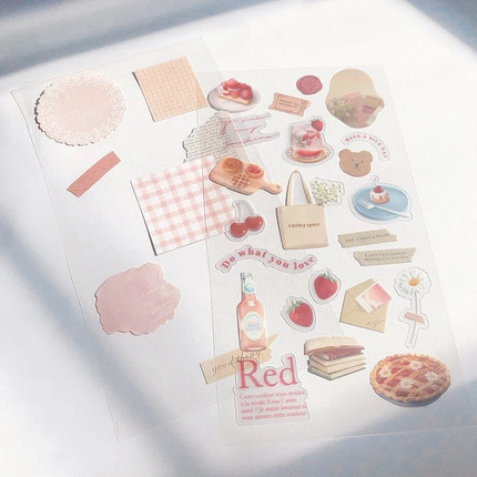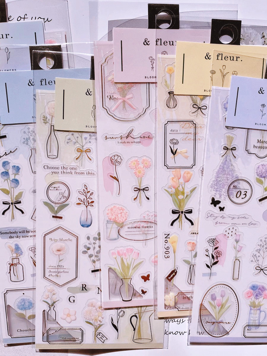 日系ins卡通烫金花朵树叶英文双层手账素材贴纸diy拼贴装饰贴画纸