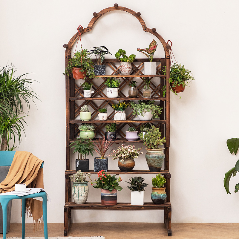 阳台花架多层落地阶梯式户外室内客厅植物花盆架子碳化防腐木直销