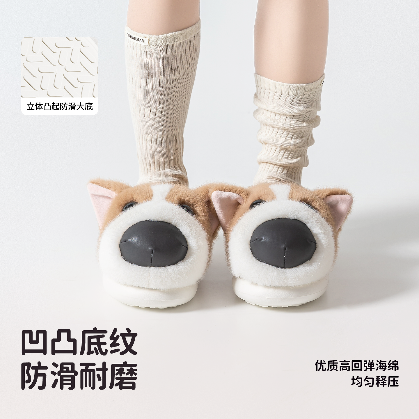 amazelulu柯基棉拖鞋女包跟居家室内防滑保暖可爱毛绒情侣毛毛鞋