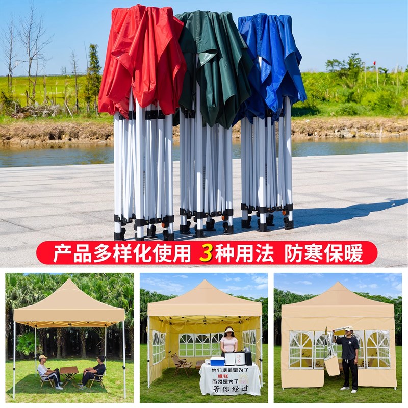 帐篷户外四脚大伞防雨围布遮阳棚伸缩式棚子遮雨R篷四角雨棚摆摊