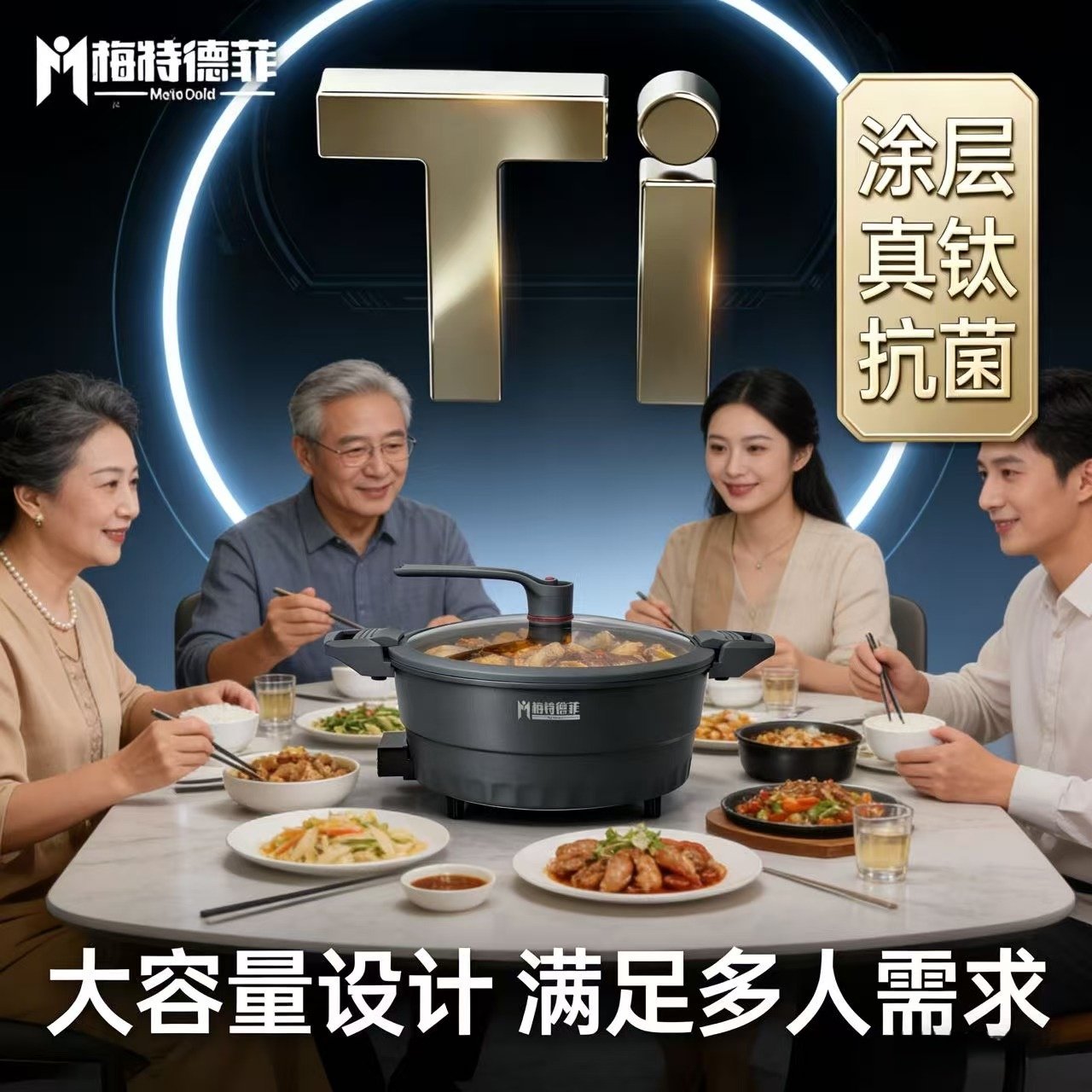 梅特德菲不粘锅电炒锅家用炒锅多功能一体钛合金微压锅电煮速食锅