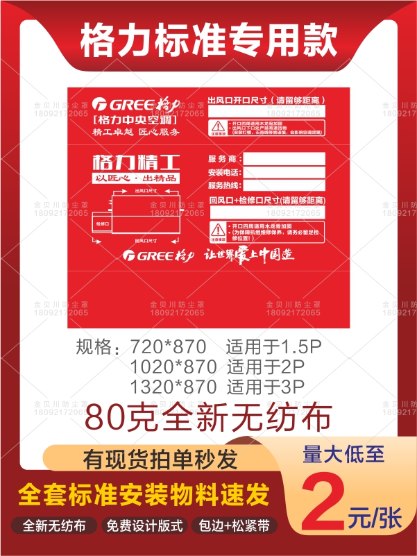 中央空调防尘罩格力出风口装修防尘无纺布现货风管机安装保护贴纸