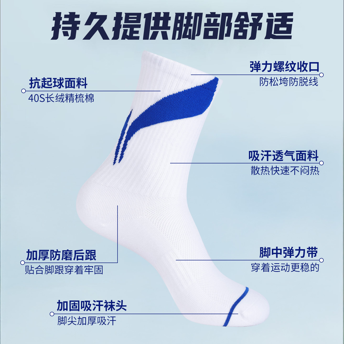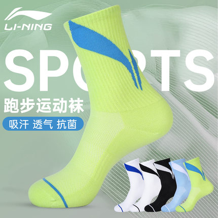 李宁袜子长筒跑步袜青少年篮球运动袜中筒女抗菌防臭秋冬加厚保暖