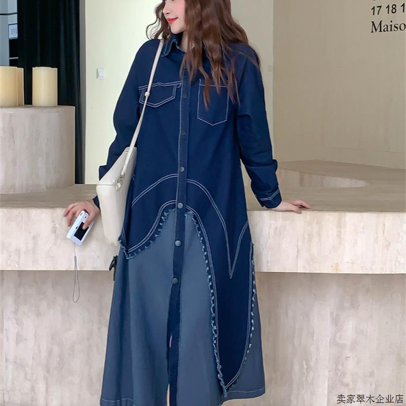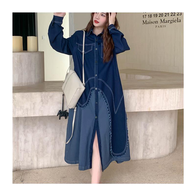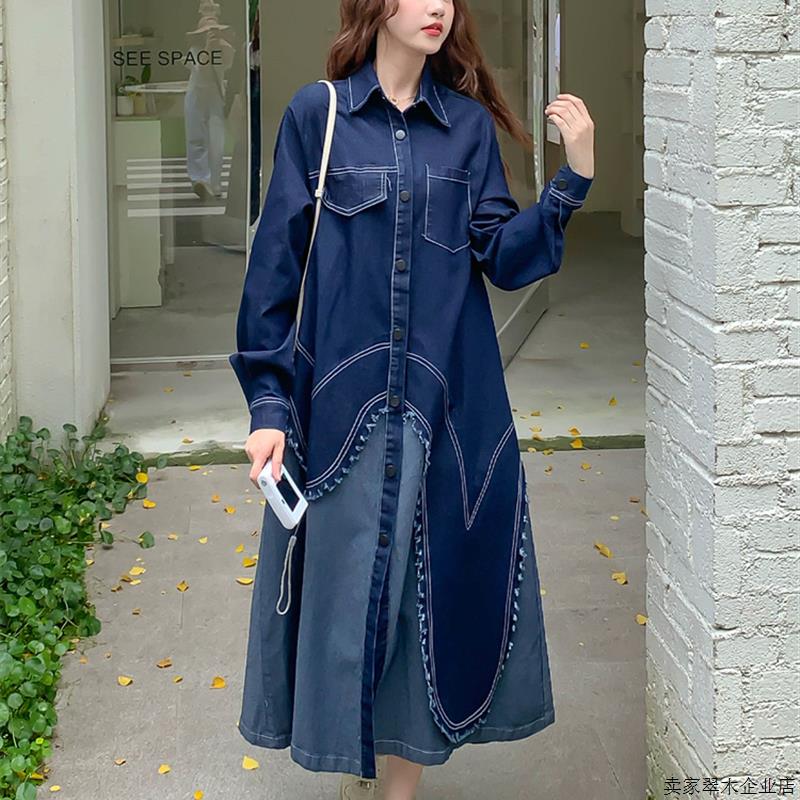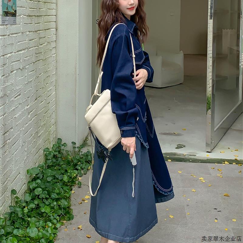 假两件拼接蓝色牛仔连衣裙女春秋2025新款法式气质巨好看衬衫裙子