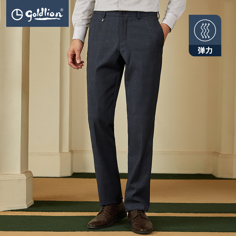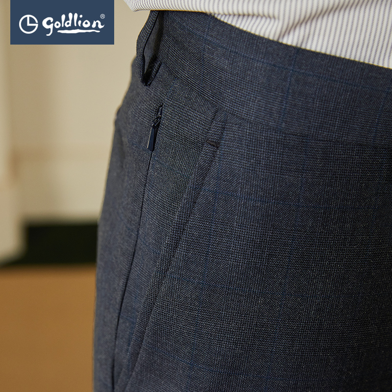 金利来春季新款男士西裤时尚格纹修身直筒商务正装上班长裤裤子男
