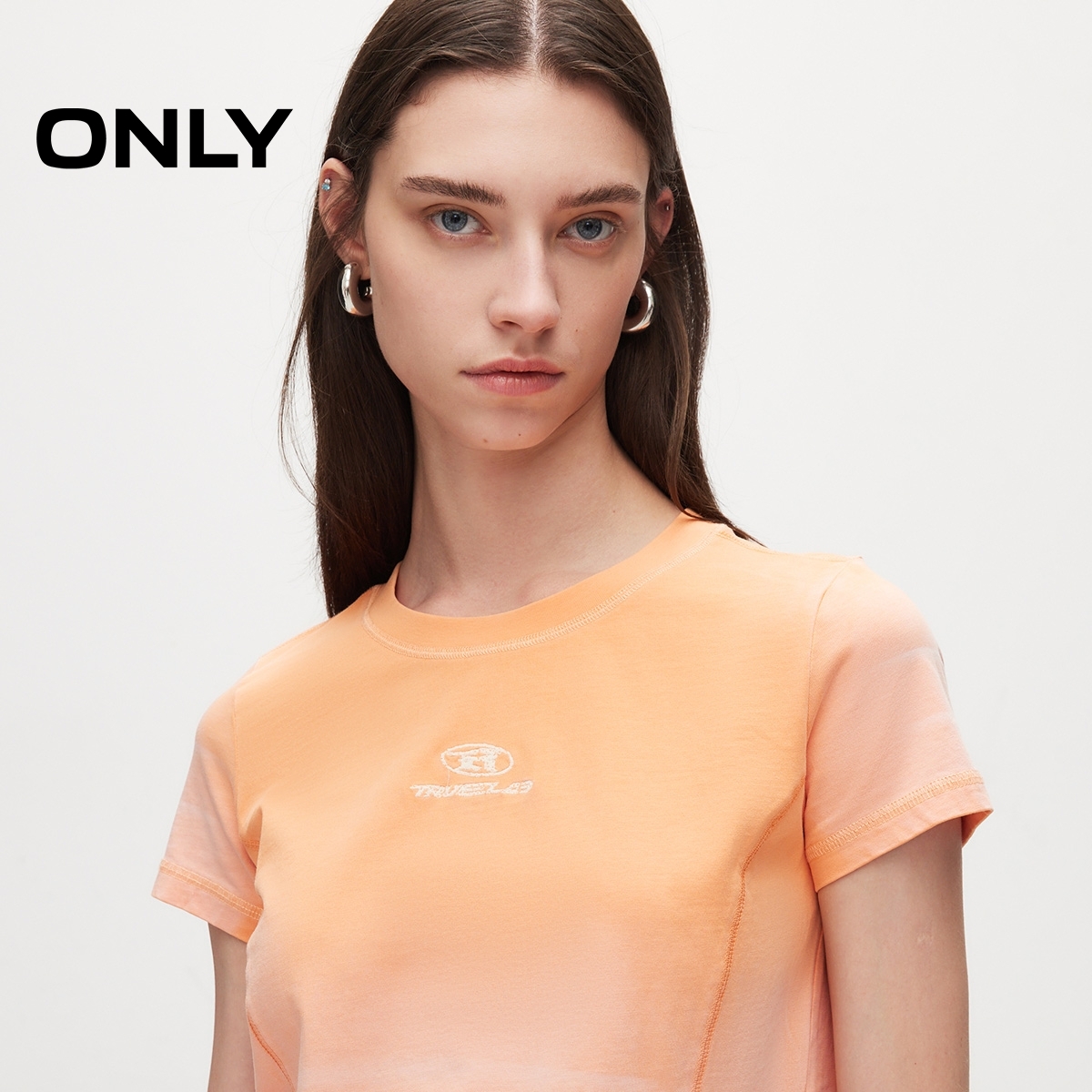 ONLY水洗刺绣圆领短款T恤