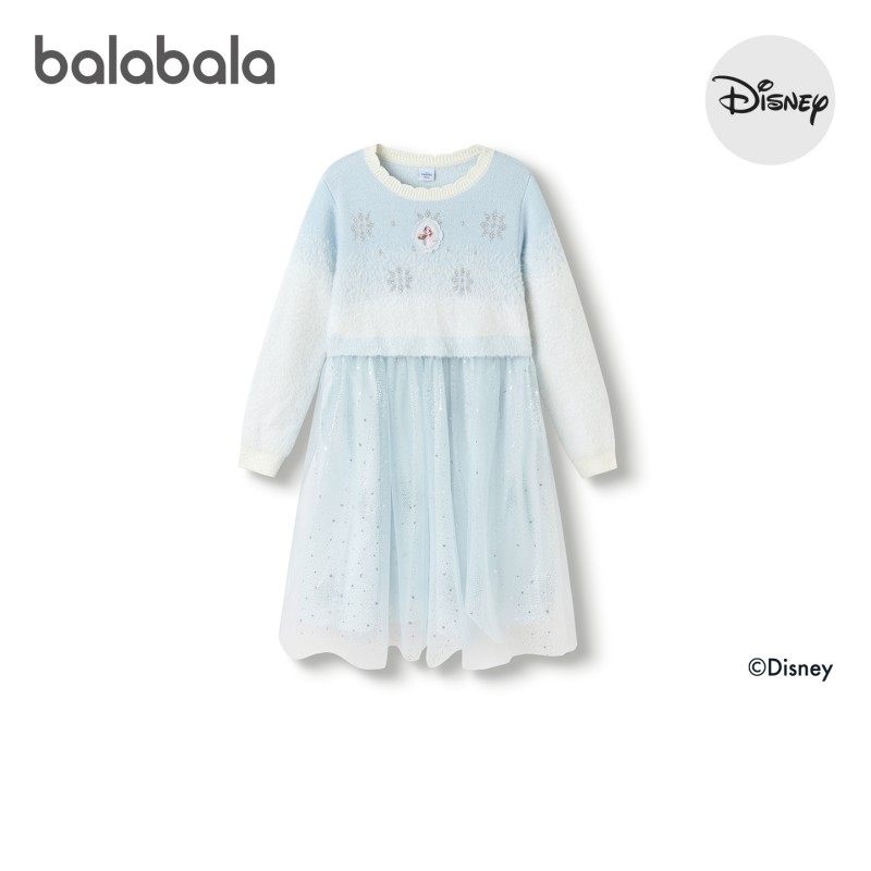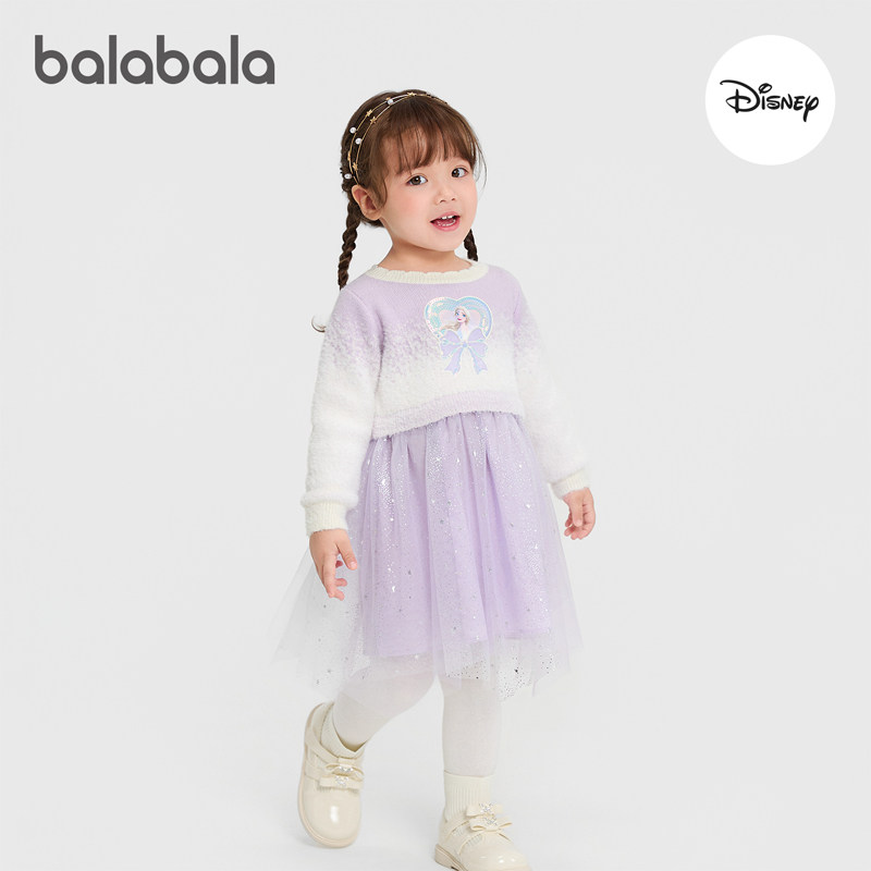 【迪士尼IP】巴拉巴拉女童连衣裙2025冬装新款针织女童公主网纱裙