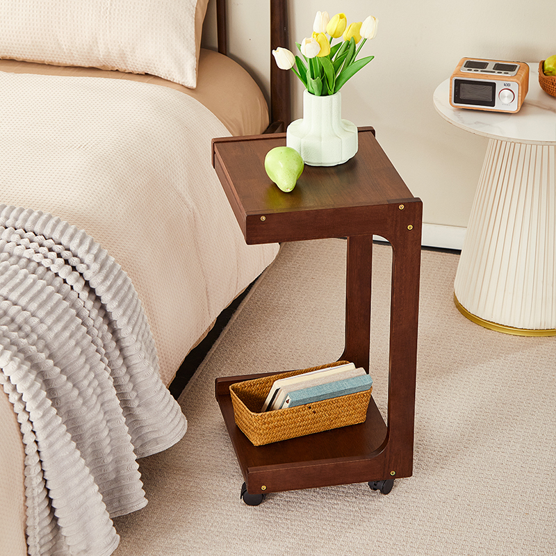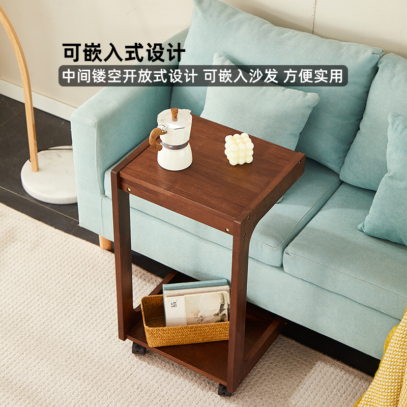 实木沙发边几可移动小桌s子客厅C型茶几床头边桌茶台边柜移动推车