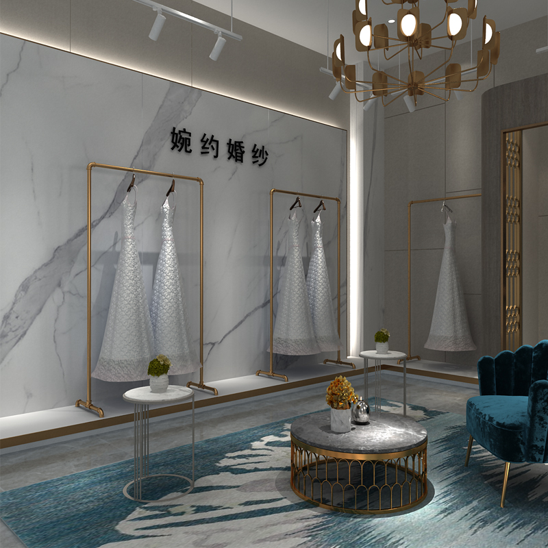 婚纱店水管展示架旗袍礼服落地式简易龙门架服装挂衣架金色陈列架