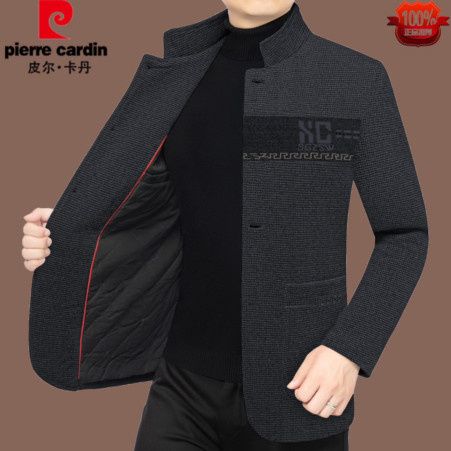 皮尔卡丹秋冬新款中年男夹克羊毛呢加棉加厚商务休闲爸爸男装外套